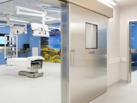 Có thể sử dụng cửa trượt (tự động/bằng tay) hoặc cửa cánh bản lề. Cửa được thiết kế kín khít đảm bảo an toàn cho áp lực dương trong phòng mổ. Có bố trí cửa sổ để có thể nhìn vào phòng từ ngoài. Cửa được thiết kế khung bằng thép mạ kẽm, hoàn thiện bề mặt bằng Laminate hoặc thép không rỉ. |